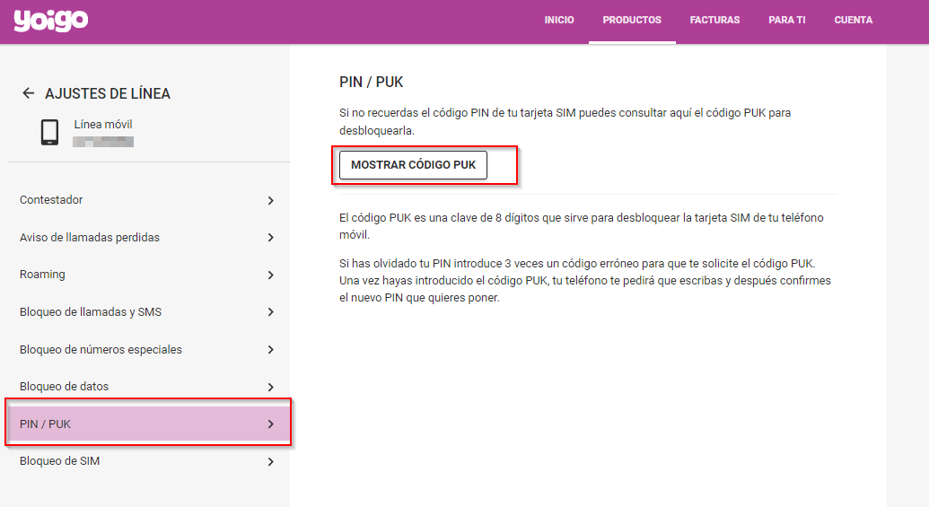 Para consultar yrecuperar el PUK de tu línea de la forma más fácil puedes acceder a Mi yoigo pinchar en la línea, luego ir a Roaming y ajustes y por último "Mostrar Código Puk"
