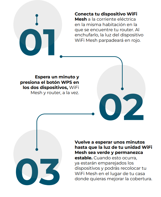 Zure egungo bideratzailea WiFi Mesh gailuarekin parekatzeko, WPS mekanismoa erabiltzen dugu. Nahikoa izango duzu bideratzailean botoi bat eta WiFi Mesh gailuan beste bat sakatzea. Bai erraza!