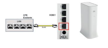 Zure MESH CONTROLLER gisa funtzionatuko duen ekipoarekin hasiko gara (1). Zure uneko bideratzailearekin parekatzeko, horiz jaso duzun Ethernet kablea gailura konektatu beharko duzu (1). Zure bideratzailea piztuta egon beharko da, eta Ethernet kablearen mutur bat gailuaren WAN atakara (gorriz adierazten dugun sarrera) (1) konektatu beharko duzu, eta beste muturra LANeko batera. zure uneko bideratzailearen atakak.