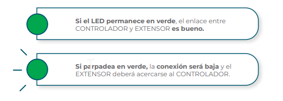 Eta MESH EXTENDER-a parekatuko dugu bere WPS botoia sakatuz, hemen kokatua, bere aurreko LED argia berde keinuka hasten den arte. 1 min igaro ondoren. Berde sendo bihurtuko dela ikusiko dugu. Orain mugitu dezakezu